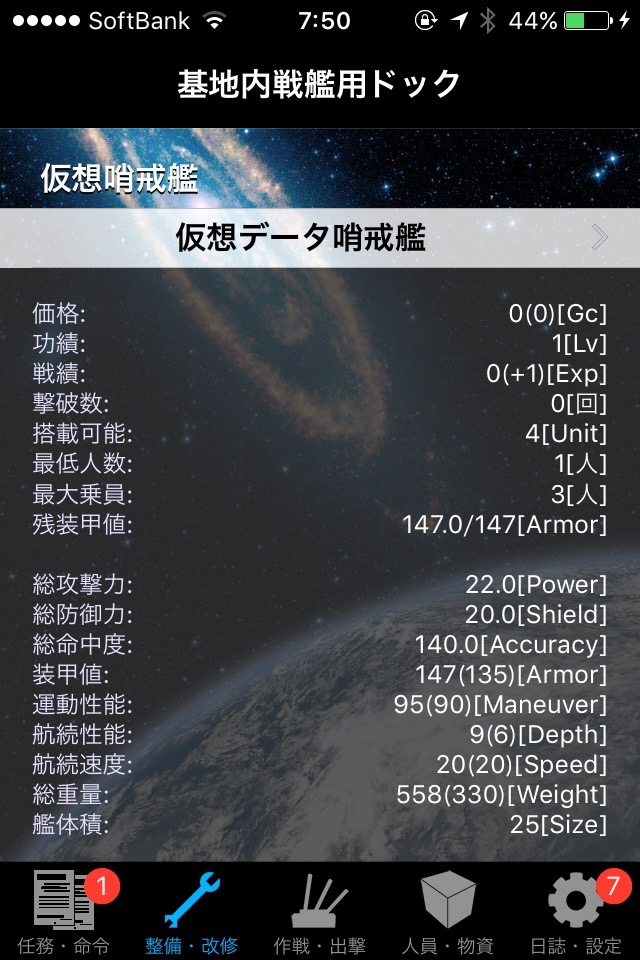 これがシミュレータに再現された、哨戒艦クラスの情報一覧です。